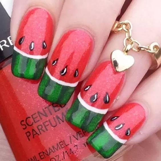 這樣,一款獨(dú)特的吃瓜醬美甲就完成了!